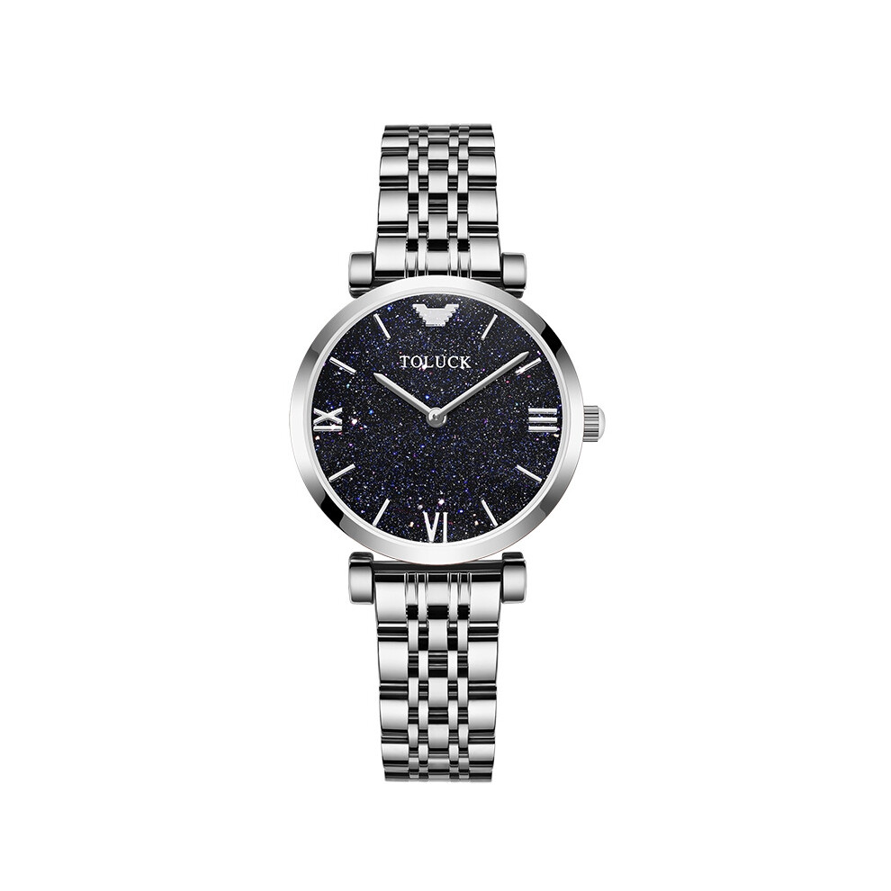 (Silver starry sky) A fashionable and trendy solid steel band, simple and ultra-thin waterproof ladies' watch
