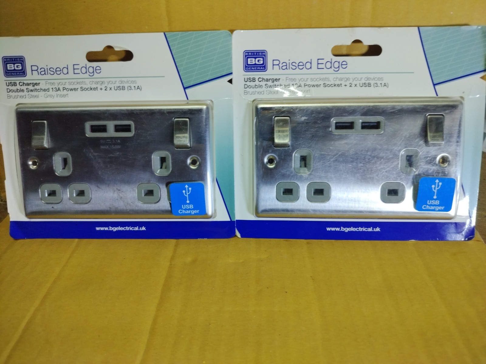 BG 13Amp Brushed Steel Double Sockets with 2 x USB Charger (3.1Amp)