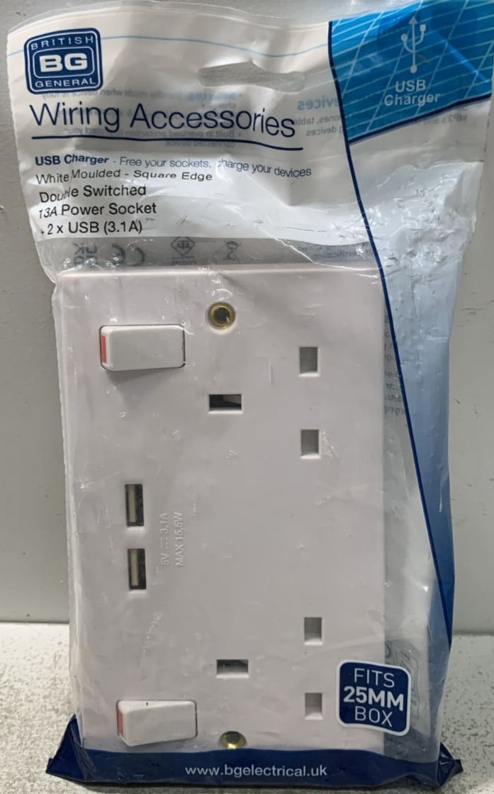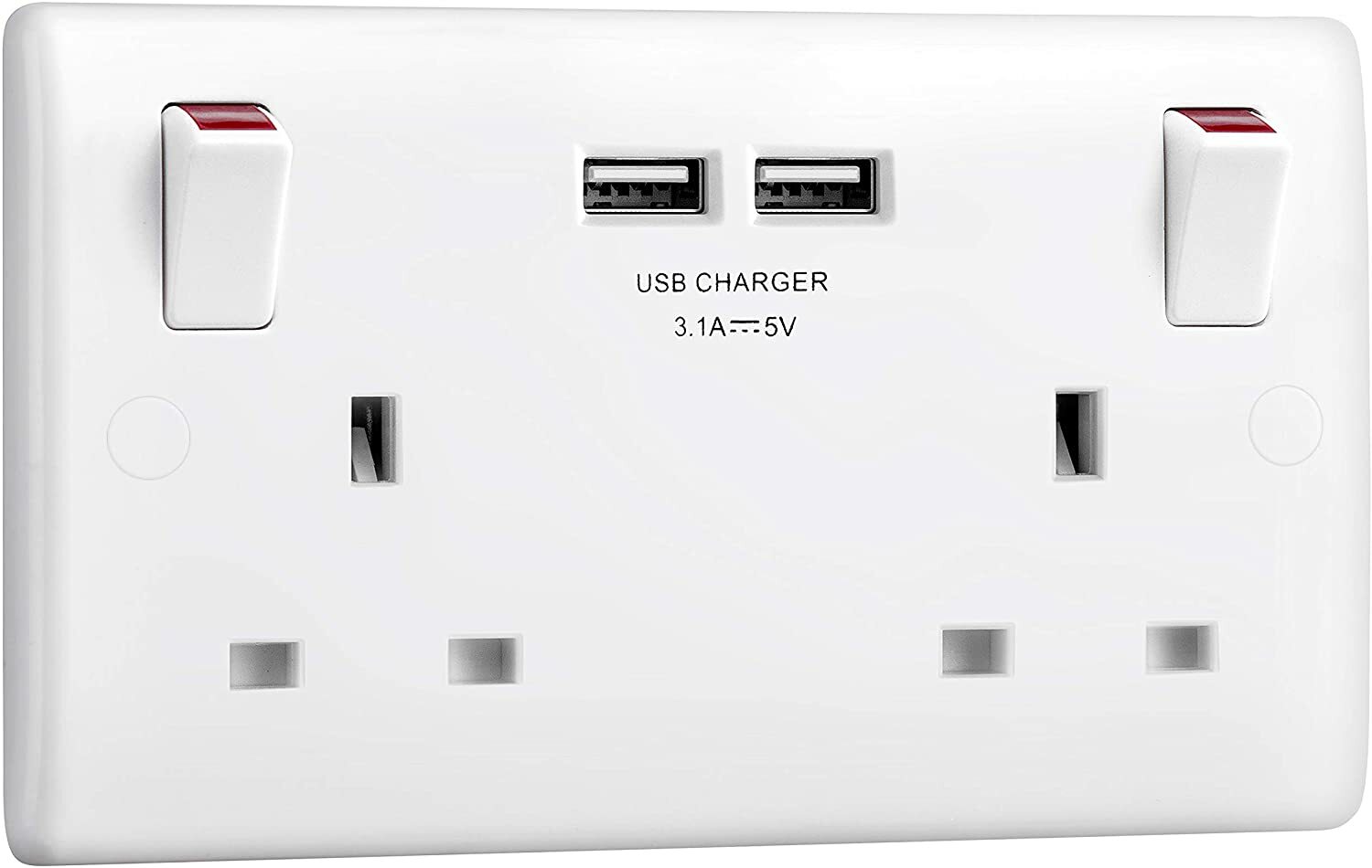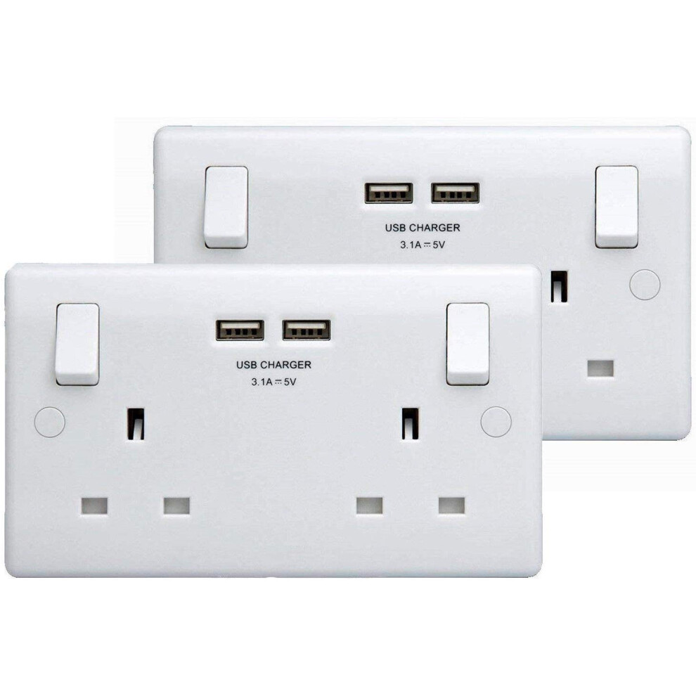 BG Electrical 822U3 Double Socket with 2 X 3.1Amp USB Sockets-30 Year Warranty-2 Pack, White, 4 x 18 x 9.6 cm