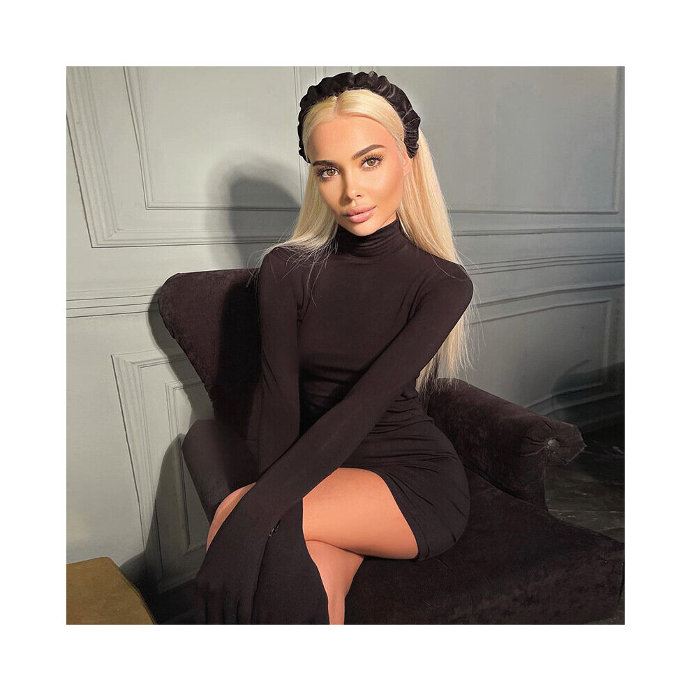 Sexy Turtleneck Gloves Long Sleeve Dresses for Women Party Night Club Wear Red Bodycon Mini Dress N85-BH20