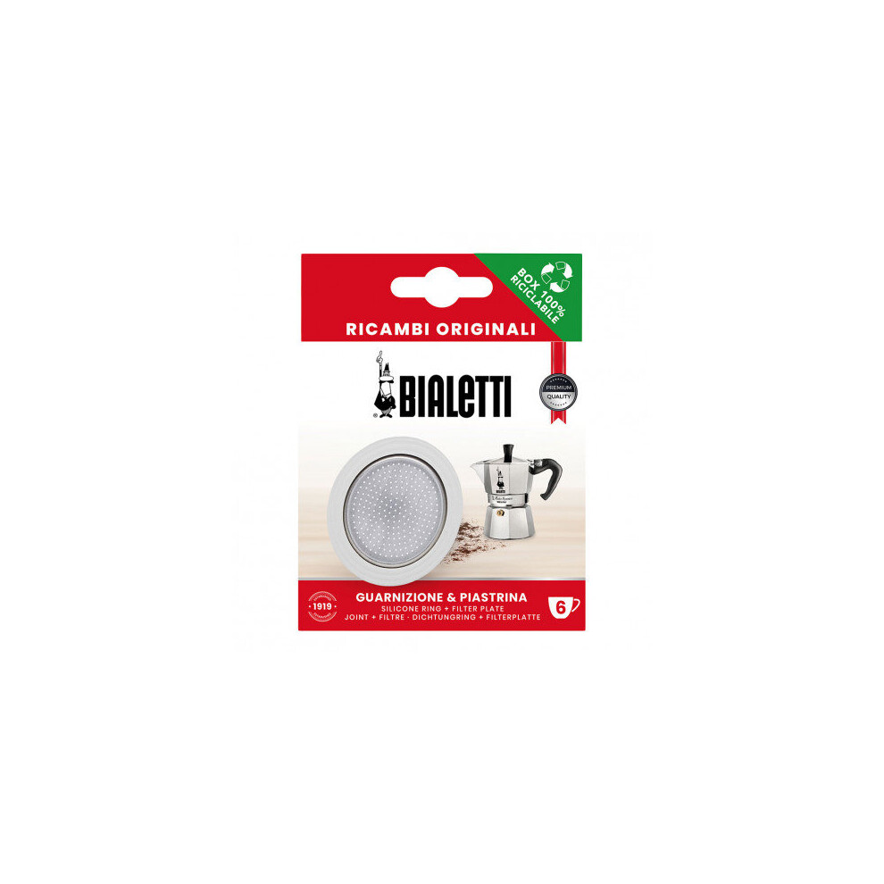 Bialetti Moka Seal and Aluminum Filter, White, 72mm, For 6 Cup Coffee Maker
