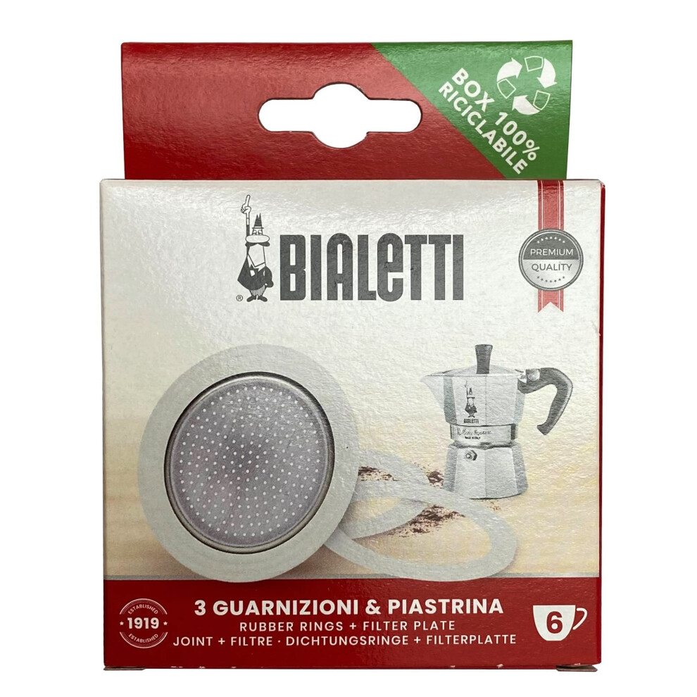 Bialetti Pack of 3 Gaskets and 1 Filter for 6-Cup Espresso Coffee Maker Aluminium