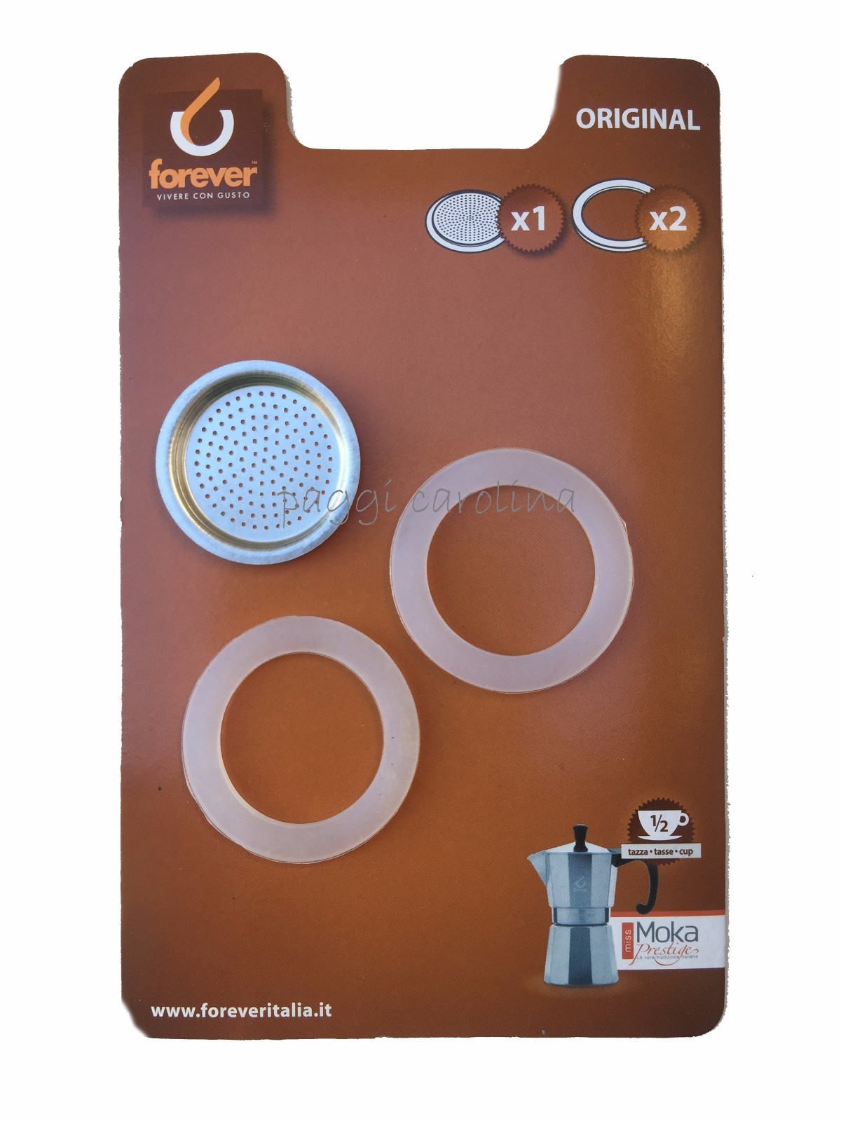 Forever 2 Silicone Gaskets + 1 Aluminum Plate Moka Prestige 1/2 Cup