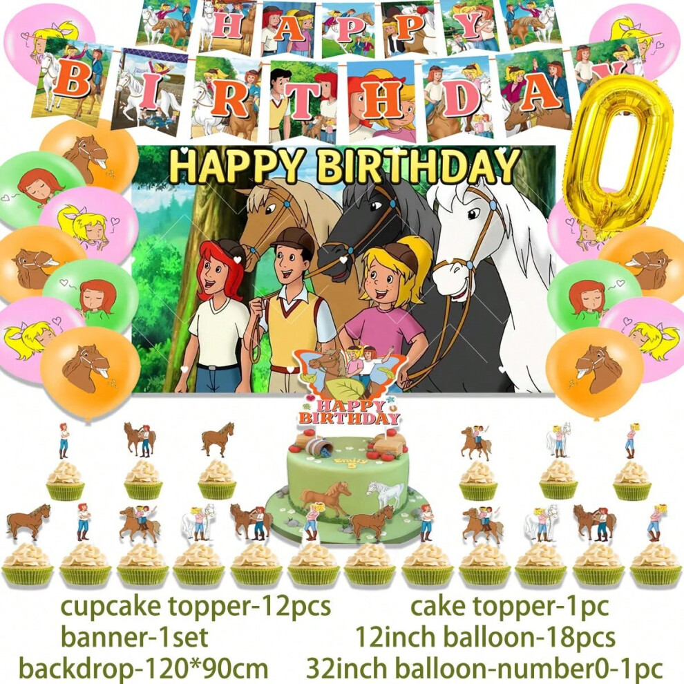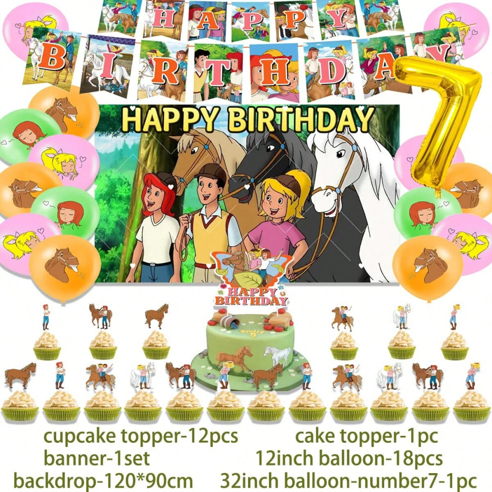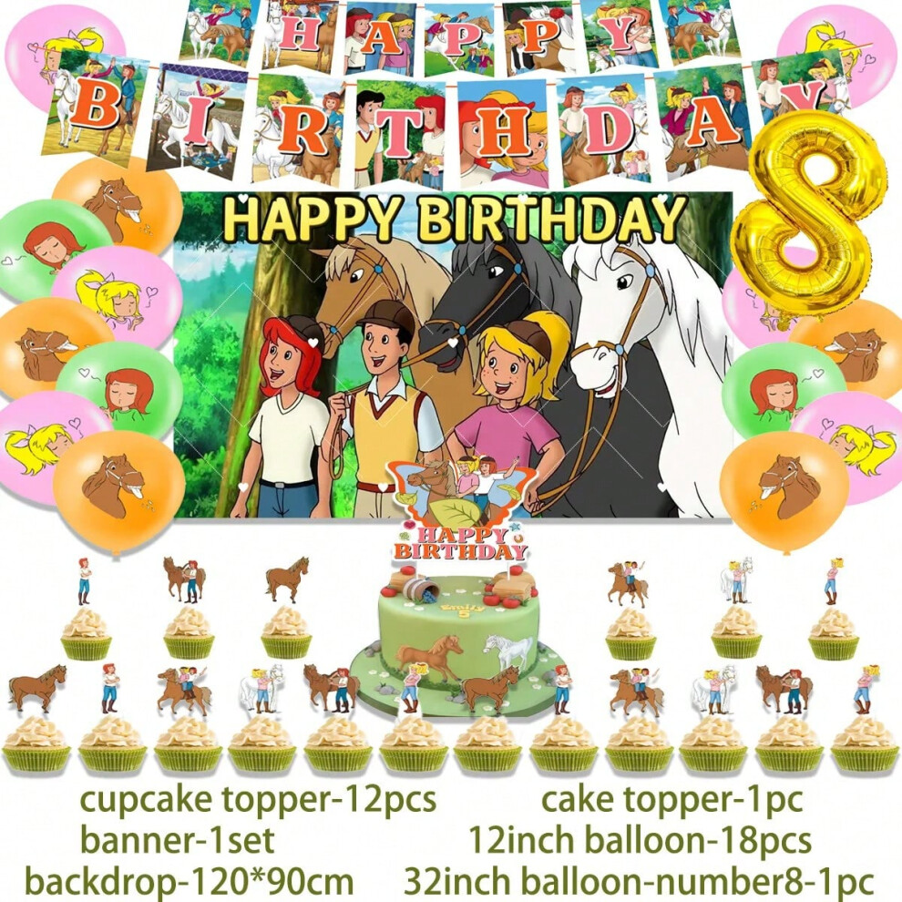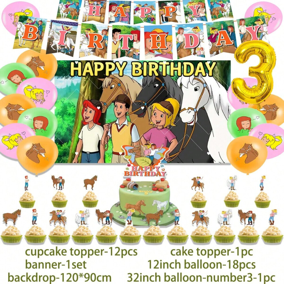 (N-1, Other) Cartoon Bibi & Tina Theme Birthday Party Supplies Decorative Game Balloon Banner Backdrop Cake Topper Kids Baby Shower Gifts