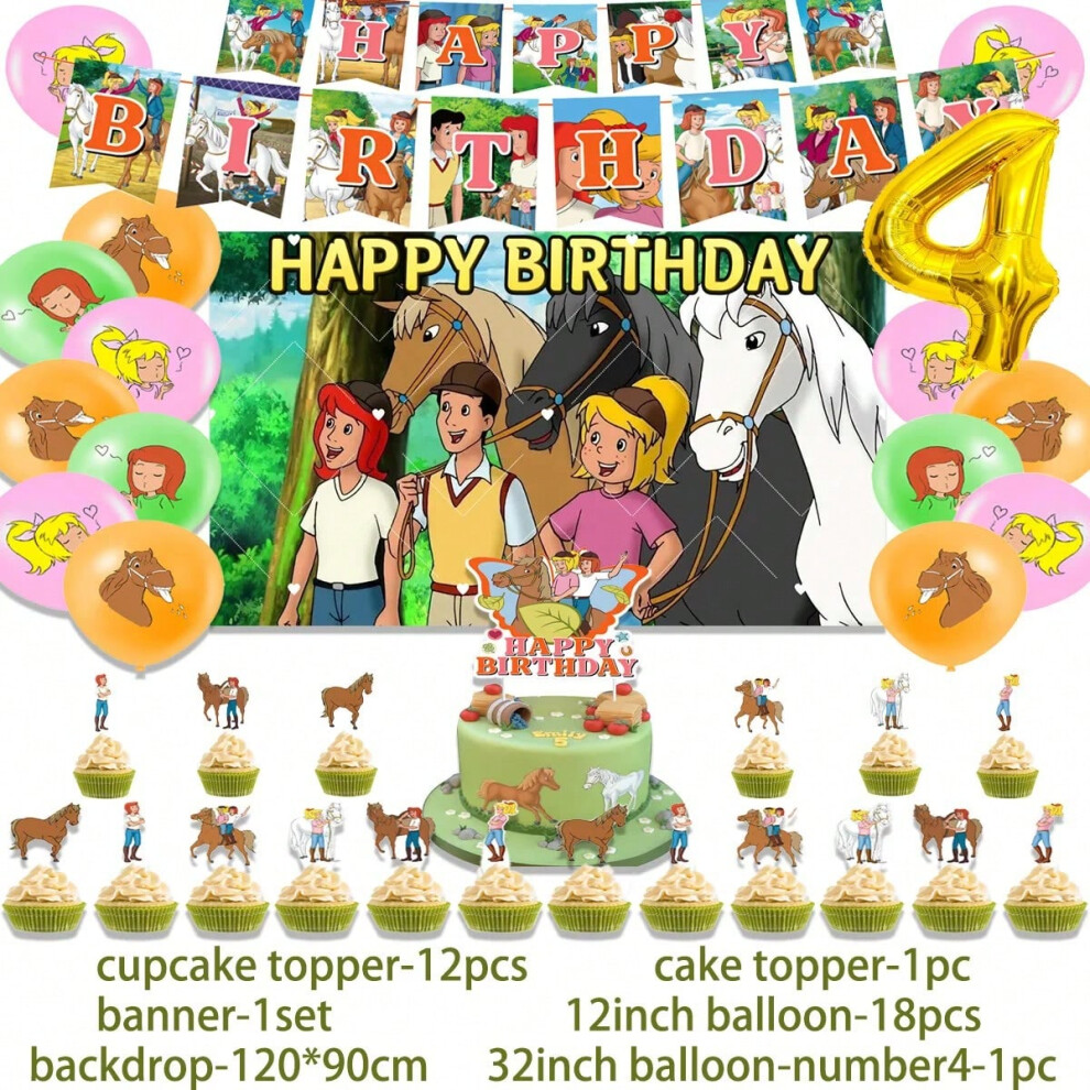 (N-4, Other) Cartoon Bibi & Tina Theme Birthday Party Supplies Decorative Game Balloon Banner Backdrop Cake Topper Kids Baby Shower Gifts