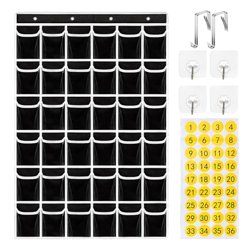 Pocket Chart for Cell Phones, Classroom Wall Mount Cell Phone Holder, 36 Pockets Wall Mounted Storage Pockets with Numeric Sticker for School, Class, Biblio