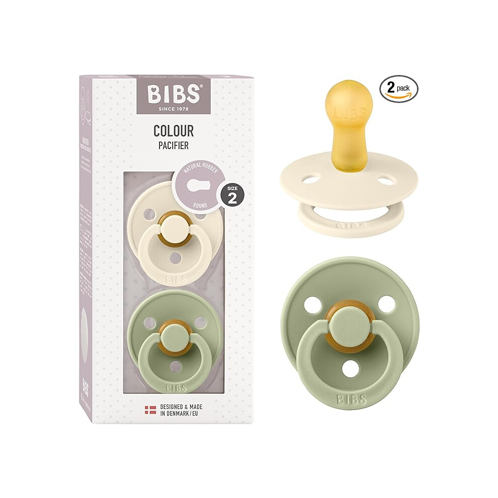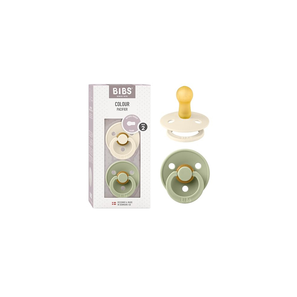 BIBS Colour Soother 2-Pack, BPA Free Dummy Pacifier, Round Nipple. Natural Rubber Latex, Size 2 (6-18 Months), Ivory/Sage