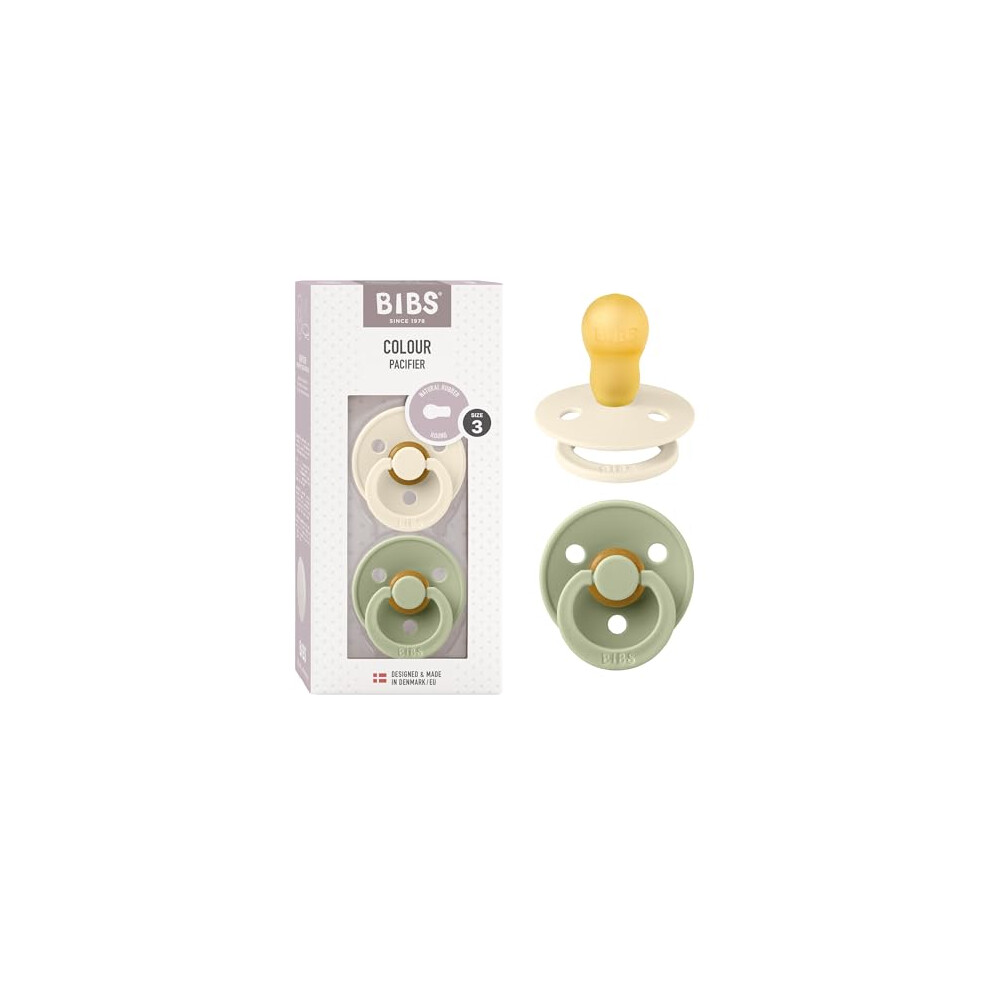 BIBS Colour Soother 2-Pack, BPA Free Dummy Pacifier, Round Nipple. Natural Rubber Latex, Size 3 (18+ Months), Ivory/Sage
