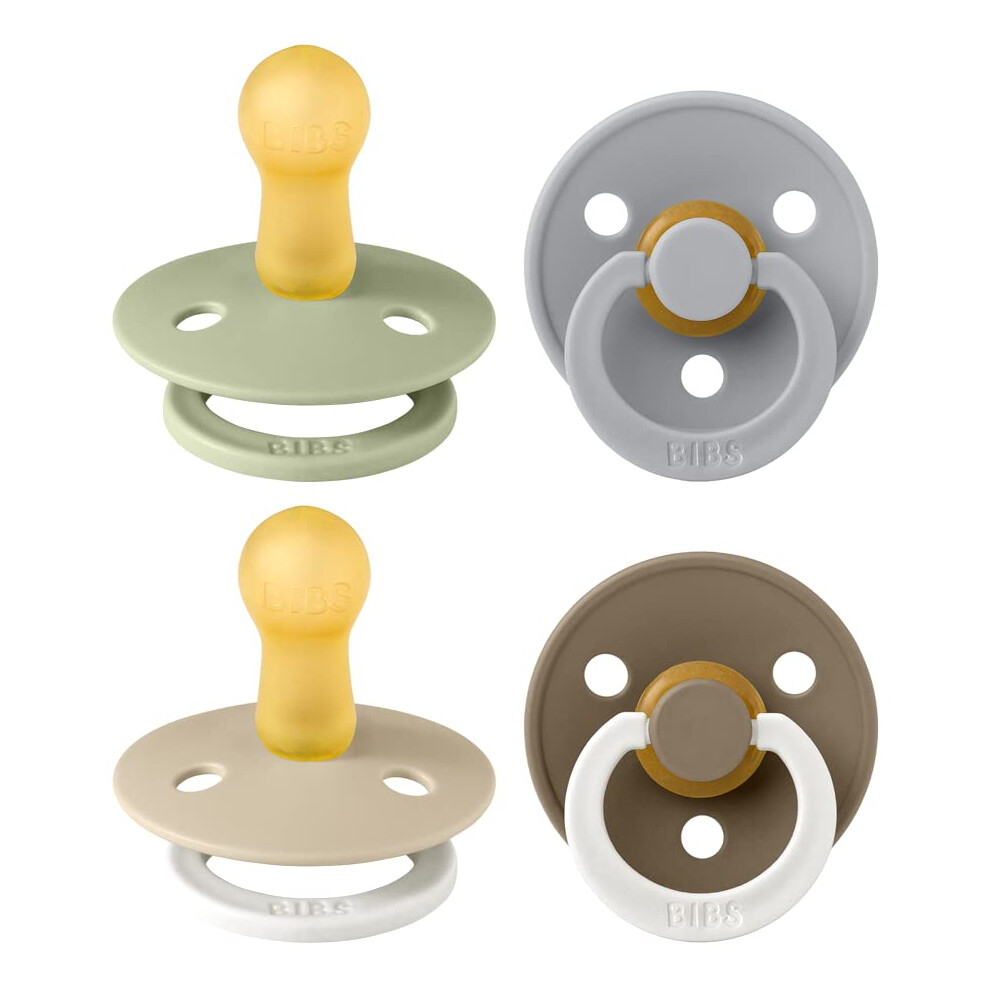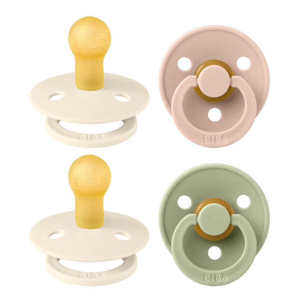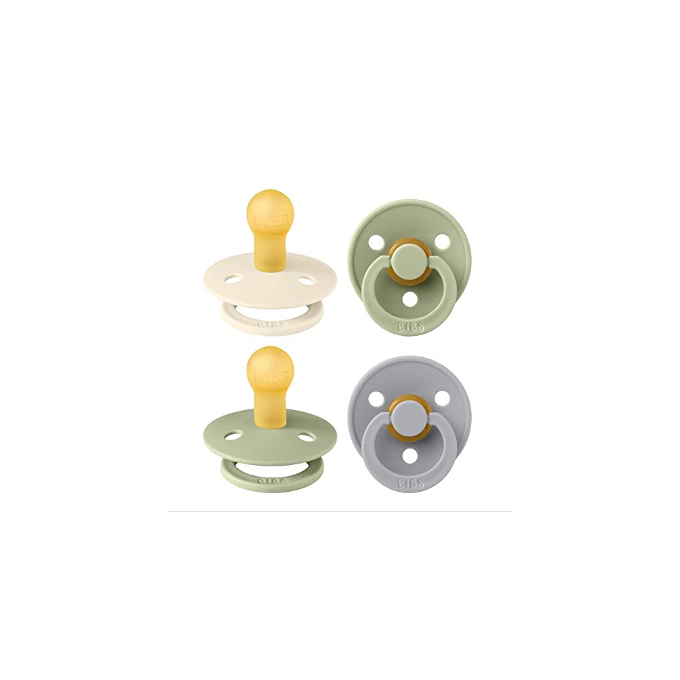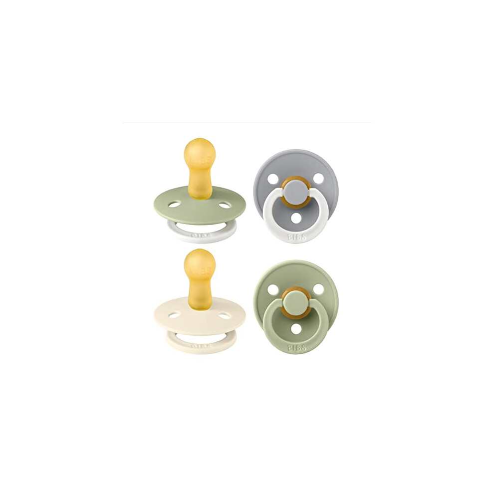 BIBS Colour Soother 4-Pack, BPA Free Dummy Pacifier, Round Nipple. Natural Rubber Latex, Made in Denmark. 6-18 Months (Pack of 4), Sage Glow Mix