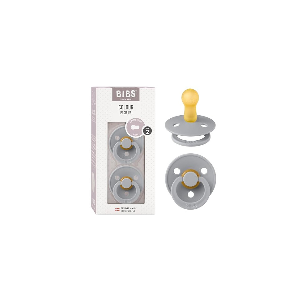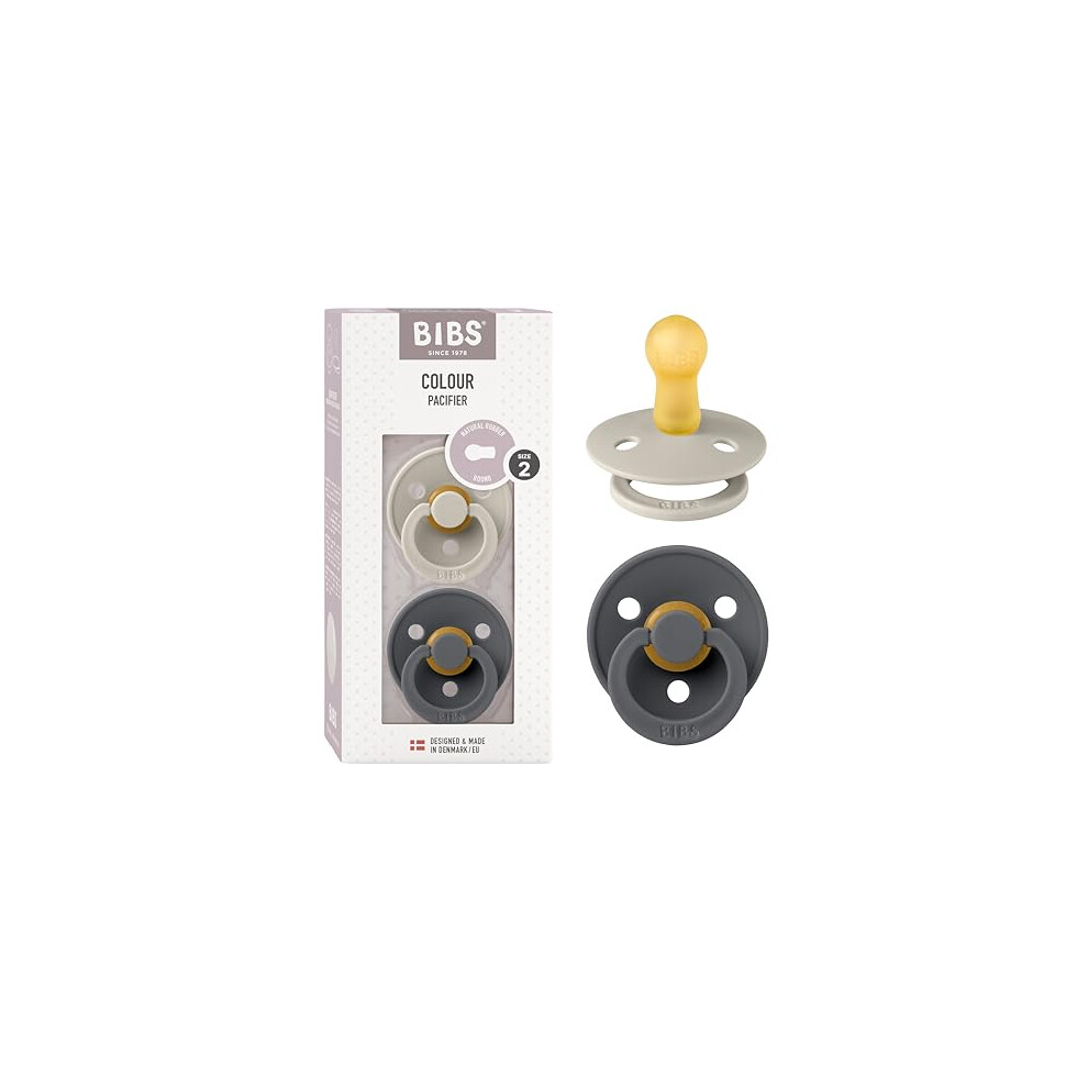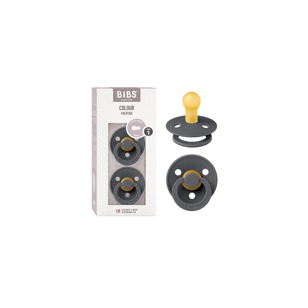BIBS Colour Soother 2-Pack, BPA Free Dummy Pacifier, Symmetrical Nipple. Natural Rubber Latex, Made in Denmark, Size 1 (0-6 Months), Iron