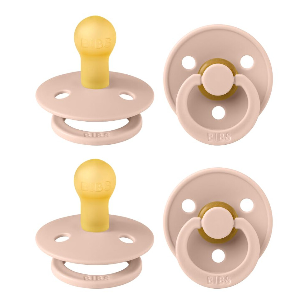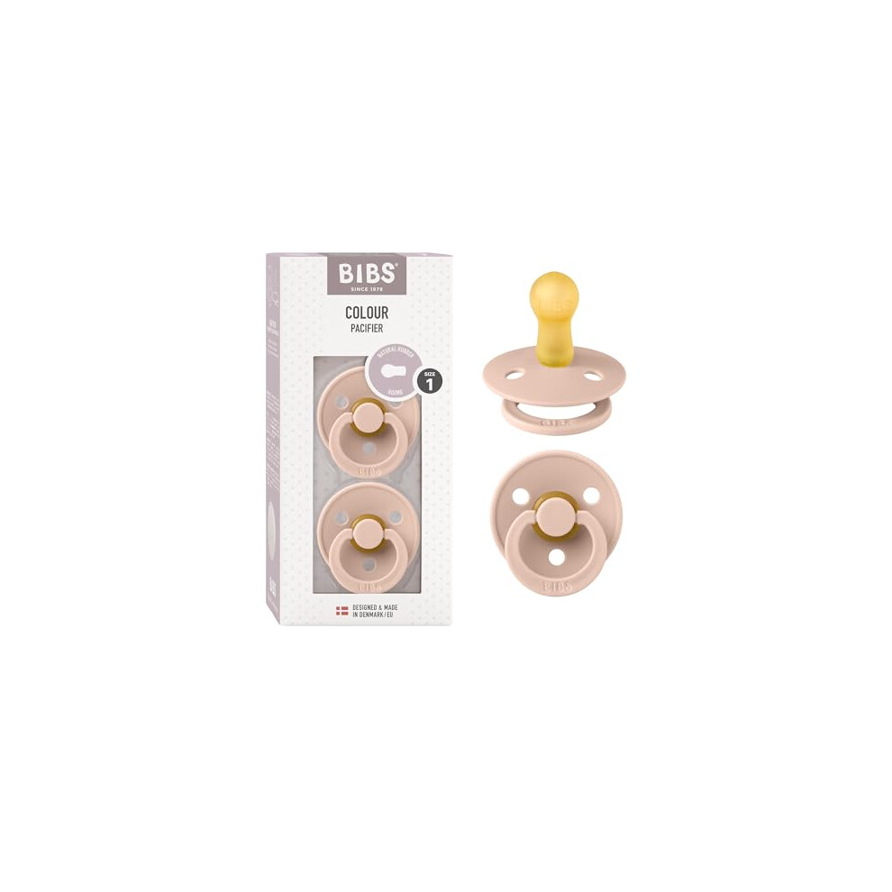 BIBS Colour Soother 2-Pack, BPA Free Dummy Pacifier, Round Nipple. Natural Rubber Latex, Size 1 (0-6 Months), Blush/Blush