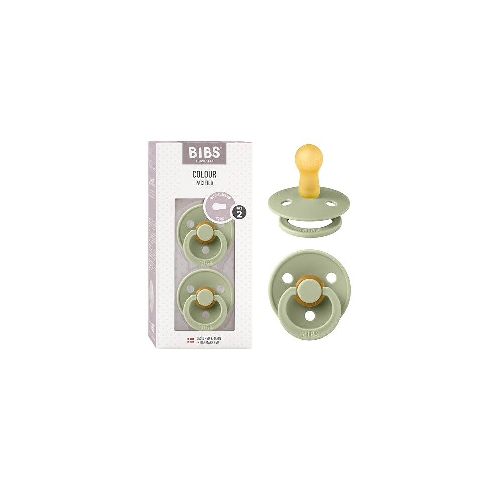 BIBS Colour Soother 2-Pack, BPA Free Dummy Pacifier, Round Nipple. Natural Rubber Latex, Size 2 (6-18 Months), Sage/Sage
