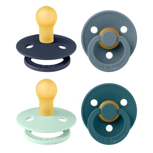 BIBS Dummies Colour 4-Pack, BPA Free Dummy Pacifier, Round Nipple Soothers, Natural Rubber Latex, Made in Denmark. 0-6 Months (Pack of 4), Baby Boy Colours