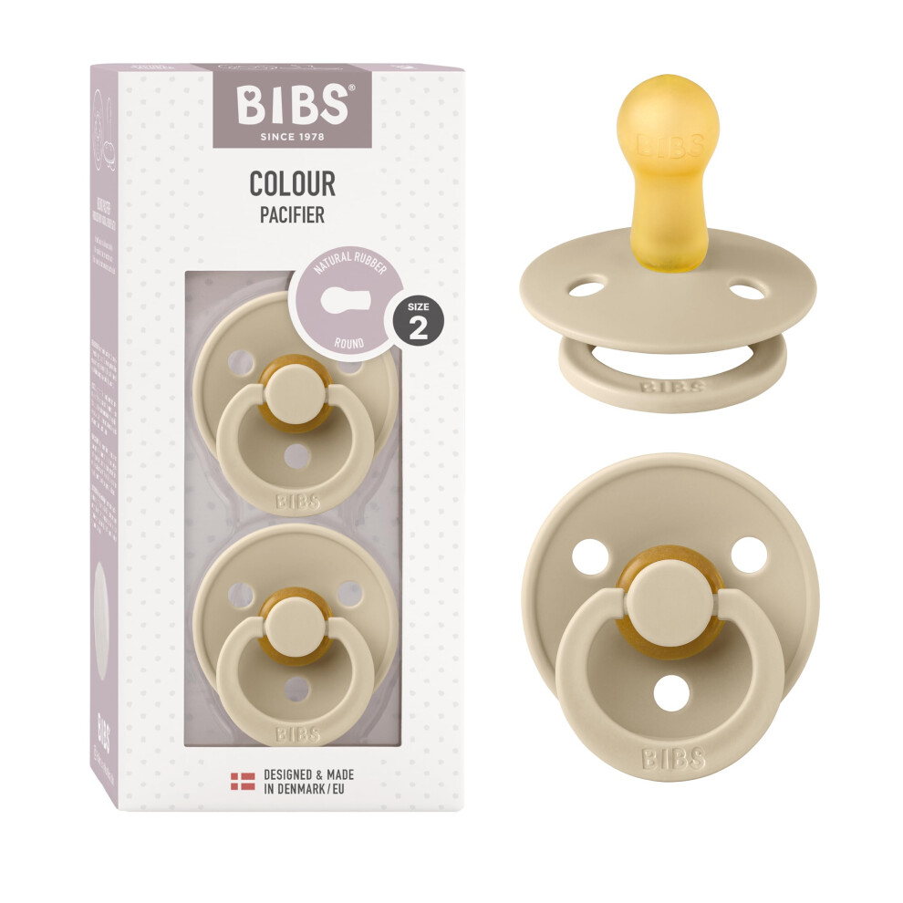 BIBS Colour Soother 2-Pack, BPA Free Dummy Pacifier, Round Nipple. Natural Rubber Latex, Size 2 (6-18 Months), Vanilla/Vanilla