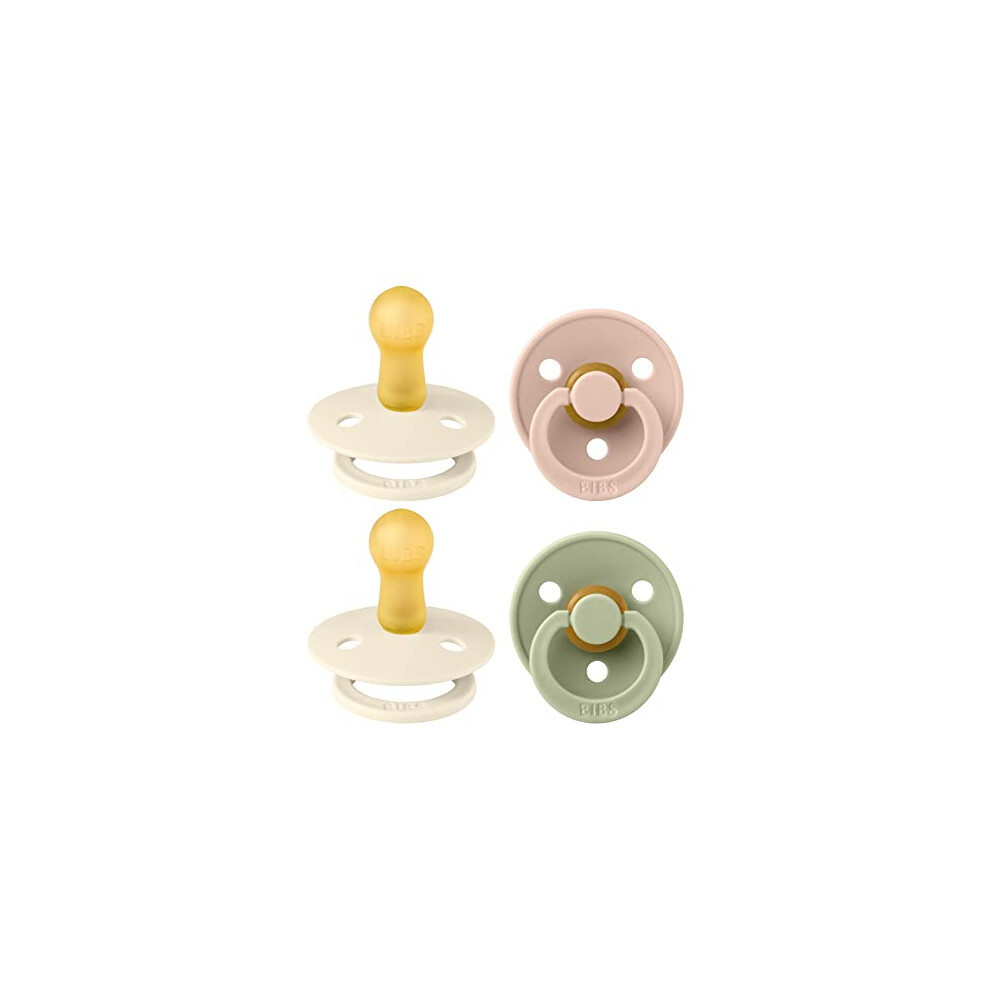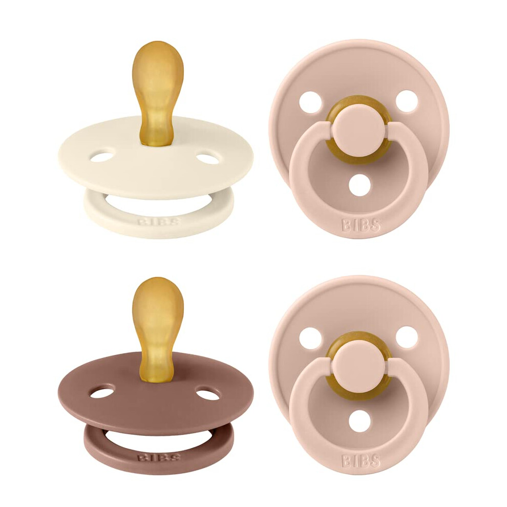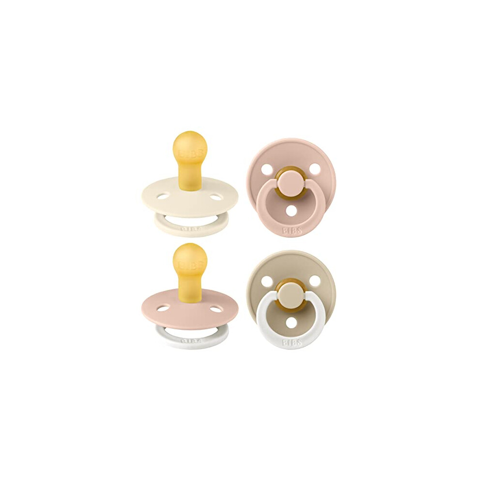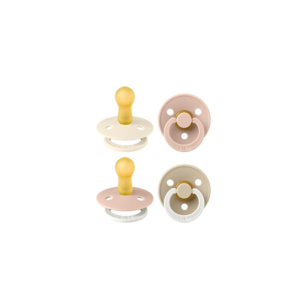 BIBS Colour Soother 4-Pack, BPA Free Dummy Pacifier, Round Nipple. Natural Rubber Latex, Made in Denmark. 0-6 Months (Pack of 4), Ivory Mix