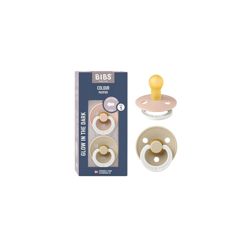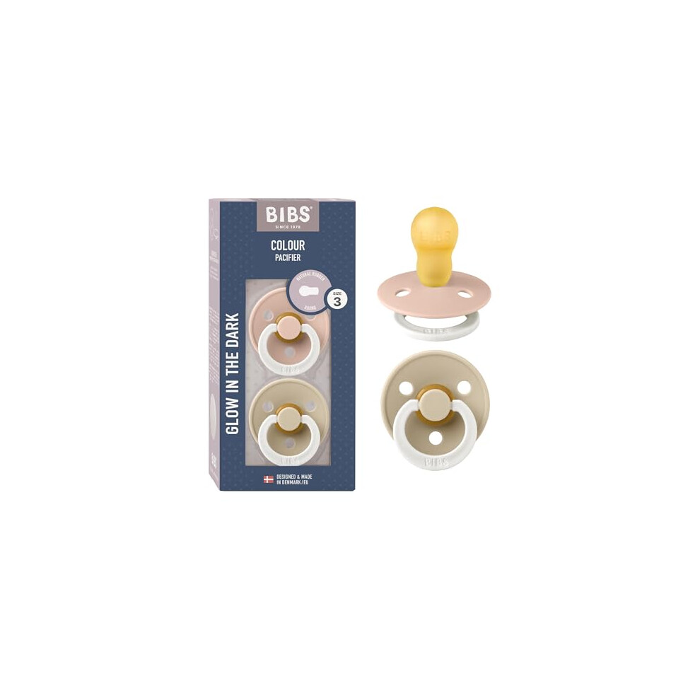 BIBS Colour Night Soother 2-Pack, BPA Free Dummy Pacifier, Symmetrical Nipple. Natural Rubber Latex, Made in Denmark, Size 3 (18+ Months), Vanilla