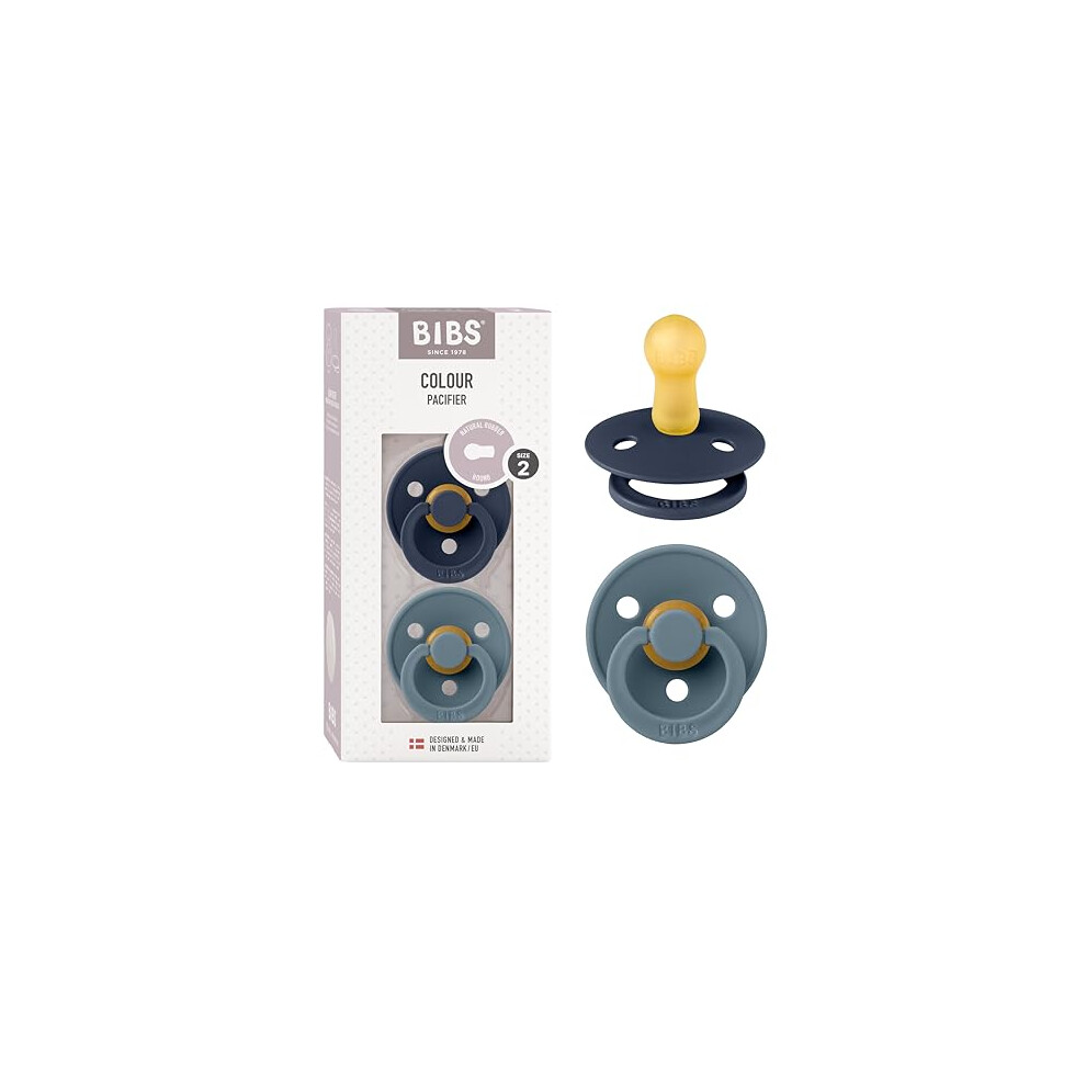 BIBS Colour Soother 2-Pack, BPA Free Dummy Pacifier, Round Nipple. Natural Rubber Latex, Size 2 (6-18 Months), Deep Space/Petrol