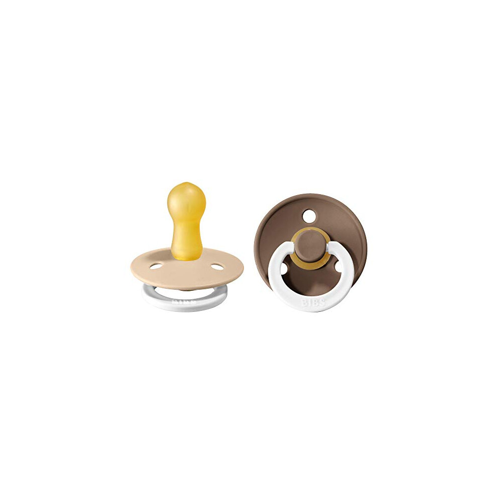 BIBS Colour Soother 2-Pack, BPA Free Dummy Pacifier, Round Nipple. Natural Rubber Latex, Size 1 (0-6 Months), Mocha/Dark Oak