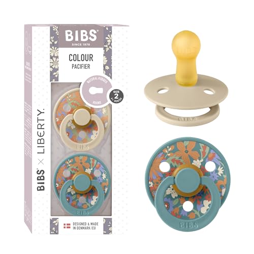 BIBS Liberty Pacifier | 2 Colour Natural Rubber Latex Soothers | BPA Free Dummy Pacifier | Round Nipple | Designed & Made in Denmark | Capel Sage