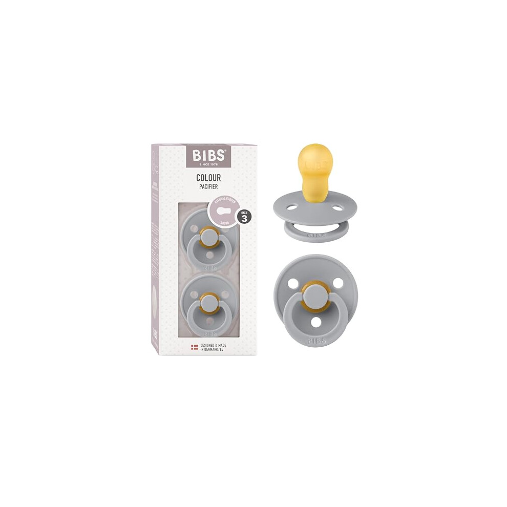 BIBS Colour Soother 2-Pack, BPA Free Dummy Pacifier, Symmetrical Nipple. Natural Rubber Latex, Made in Denmark, Size 3 (18+ Months), Cloud
