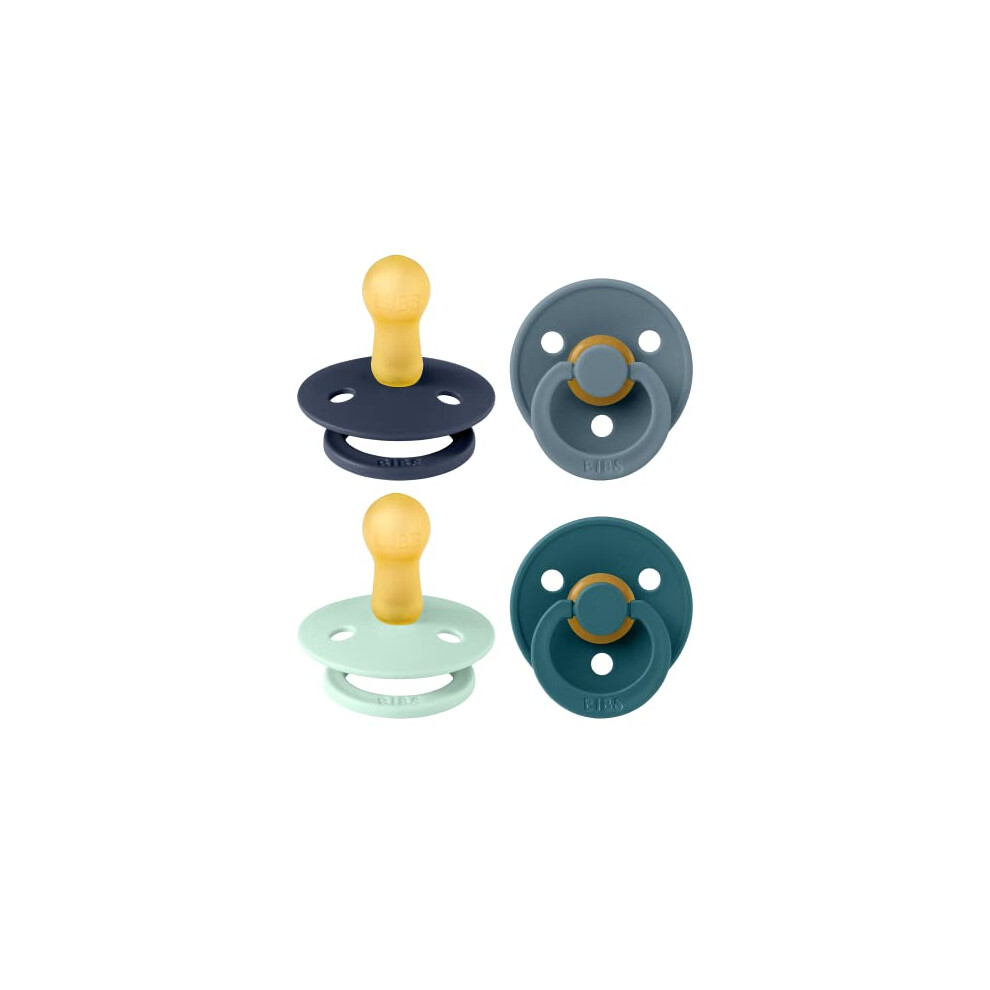 BIBS Colour Soother 2-Pack, BPA Free Dummy Pacifier, Round Nipple. Natural Rubber Latex, Made in Denmark, Size 1 (0-6 Months), Pine/Cornflower