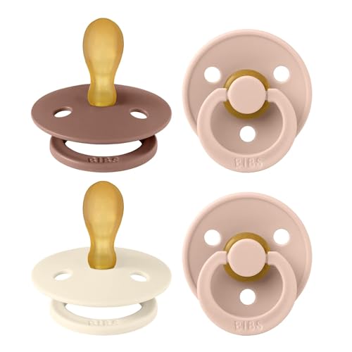 BIBS Dummies Colour 4-Pack, BPA Free Dummy Pacifier, Round Nipple Soothers, Natural Rubber Latex, Made in Denmark, Size 2 (6-18 Months), Blush