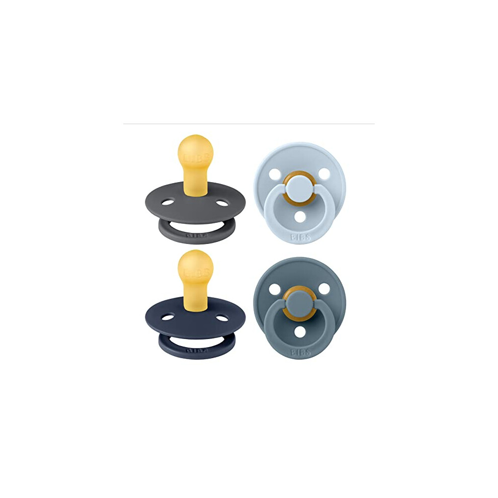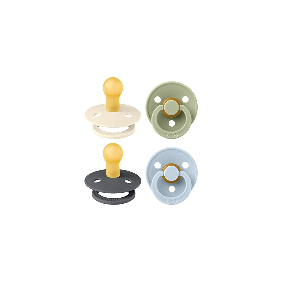 BIBS Colour Soother 4-Pack, BPA Free Dummy Pacifier, Round Nipple. Natural Rubber Latex, Made in Denmark, Size 1 (0-6 Months), Cloud