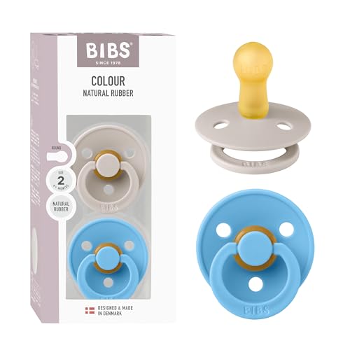 BIBS Colour Soother 2-Pack, BPA Free Dummy Pacifier, Round Nipple. Natural Rubber Latex, Size 2 (6-18 Months), Cloud/Cloud