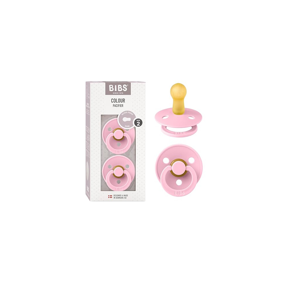 BIBS Colour Soother 2-Pack, BPA Free Dummy Pacifier, Round Nipple. Natural Rubber Latex, Size 2 (6-18 Months), Baby Pink/Baby Pink