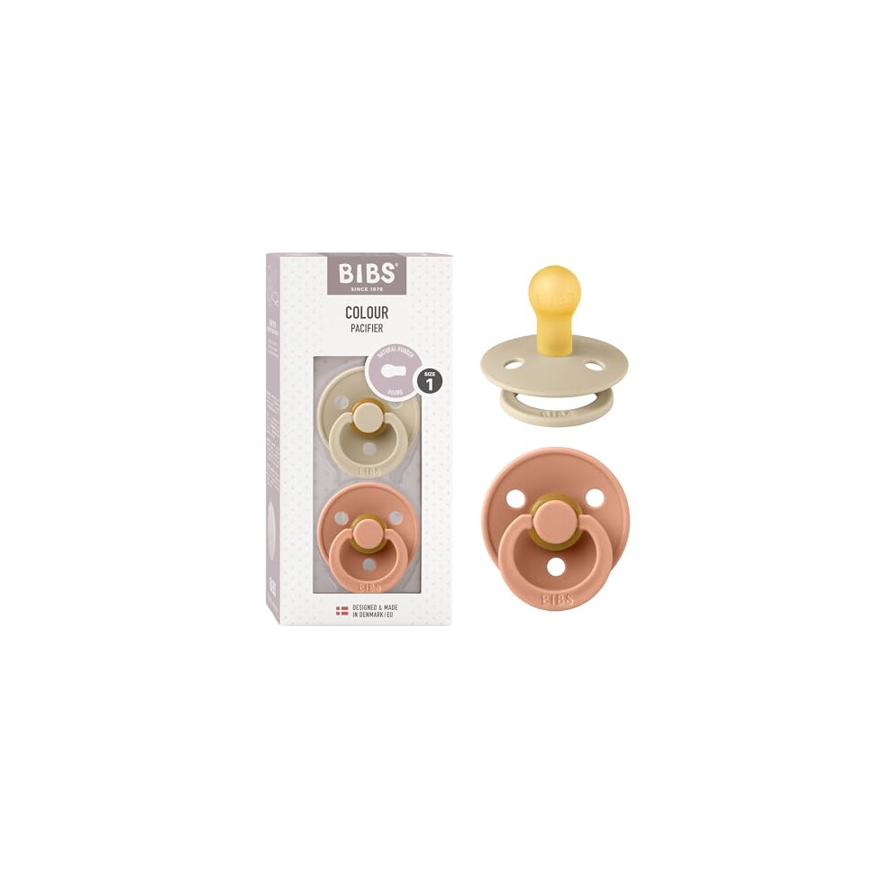 BIBS Colour Soother 2-Pack, BPA Free Dummy Pacifier, Round Nipple. Natural Rubber Latex, Size 1 (0-6 Months), Vanilla/Peach