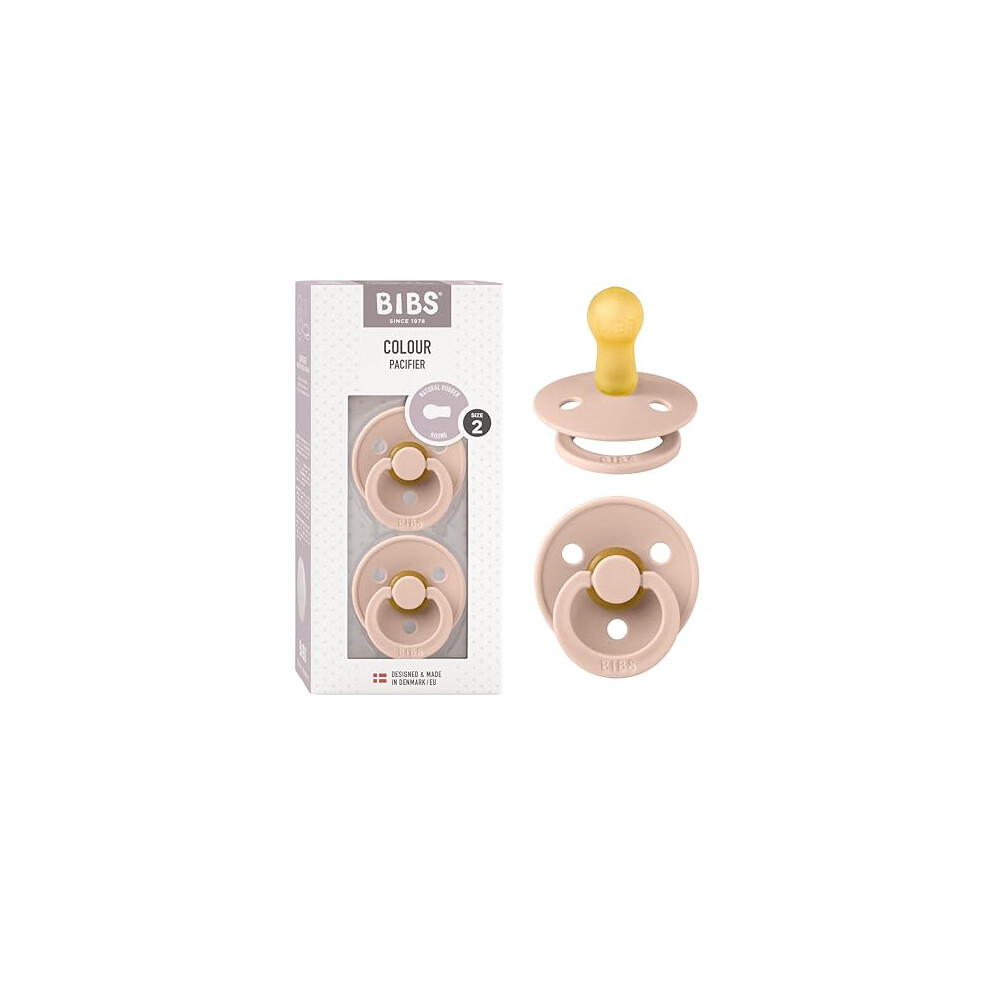 BIBS Colour Soother 2-Pack, BPA Free Dummy Pacifier, Round Nipple. Natural Rubber Latex, Size 2 (6-18 Months), Blush/Blush