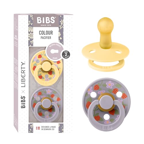 BIBS Liberty Pacifier | 2 Colour Natural Rubber Latex Soothers | Size 2 (6-18 Months) BPA Free Dummy Pacifier | Round Nipple | Designed & Made in Denmark | Strawberries and Cream Pale Butter Mix