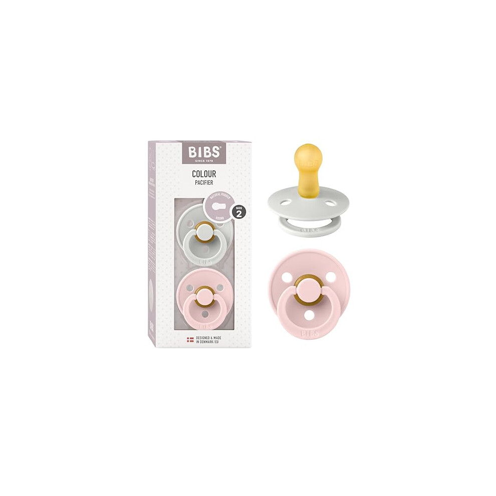 BIBS Colour Soother 2-Pack, BPA Free Dummy Pacifier, Round Nipple. Natural Rubber Latex, Size 2 (6-18 Months), Haze/Blossom