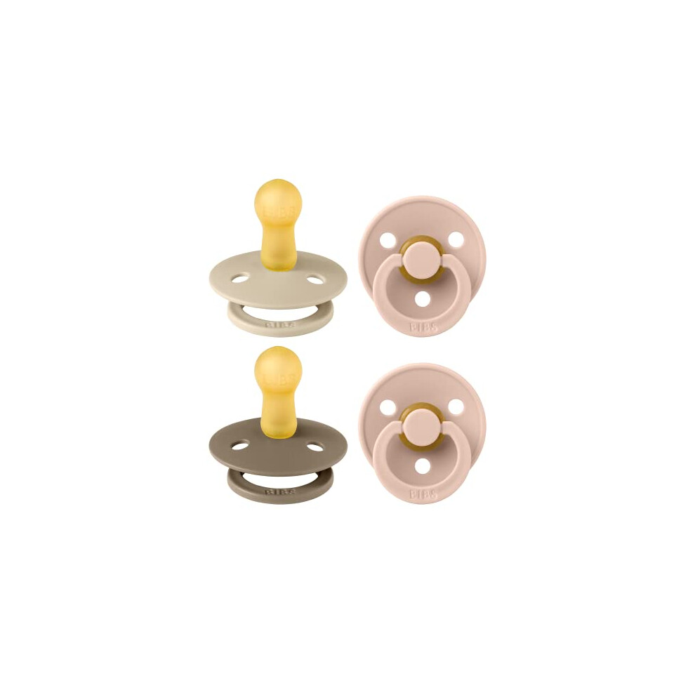 BIBS Colour Soother 4-Pack, BPA Free Dummy Pacifier, Round Nipple. Natural Rubber Latex, Made in Denmark. 0-6 Months (Pack of 4), Blush Glow Mix