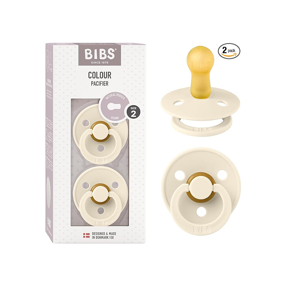 BIBS Colour Soother 2-Pack, BPA Free Dummy Pacifier, Symmetrical Nipple. Natural Rubber Latex, Made in Denmark, Size 2 (6-18 Months), Ivory