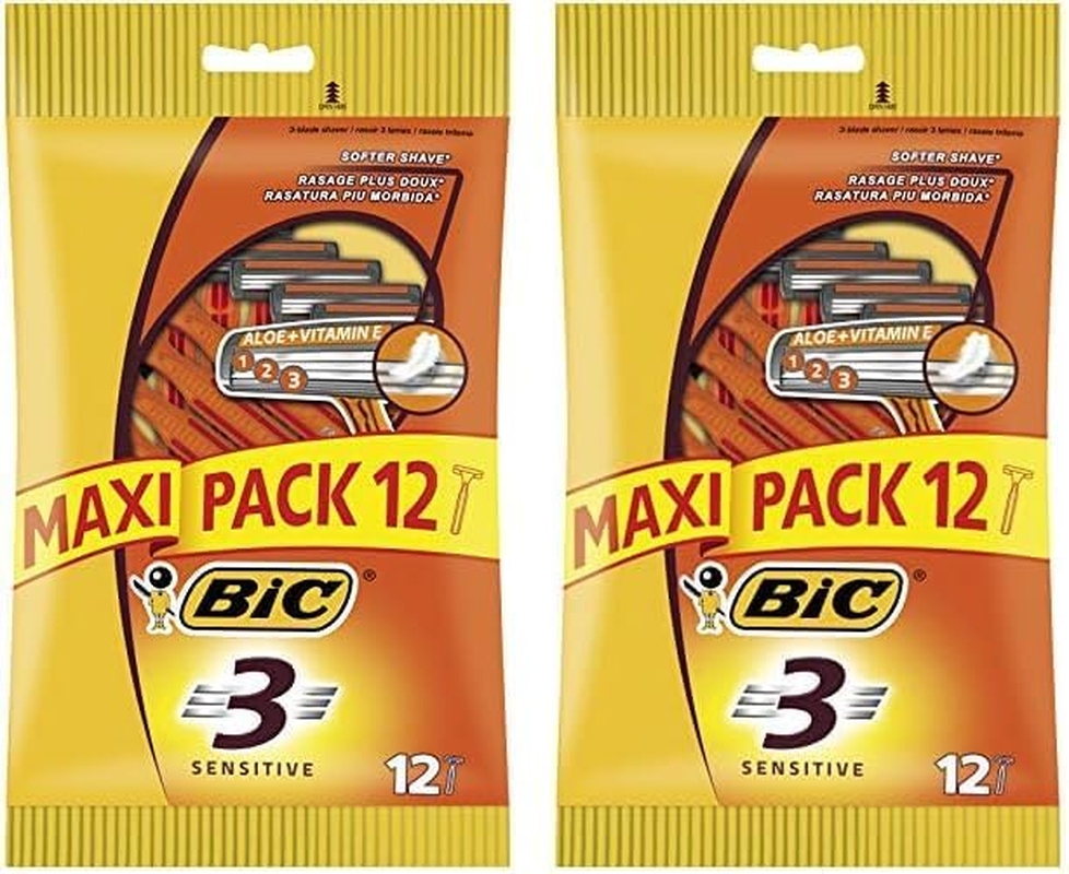 BIC 3 Sensitive Mens Disposable Razors - 24 Pack Triple-Blade Sensitive Razors