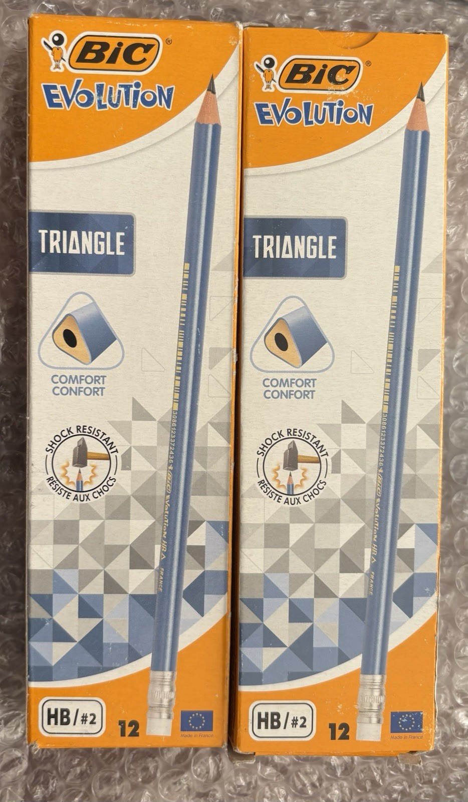BIC Evolution Triangle Triangular Pencils with Integrated Eraser HB Box of 12