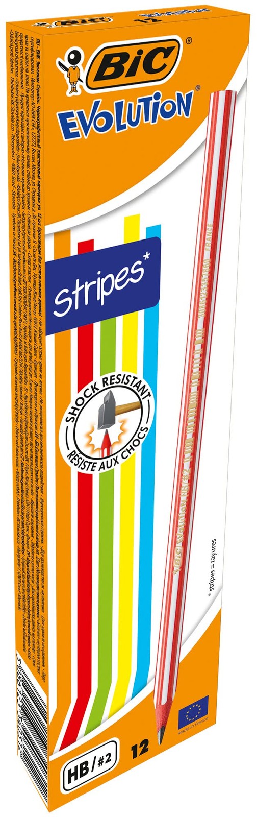 BIC Evolution Graphite Pencils - Box of 12 - HB Lead with Colourful Striped Desi