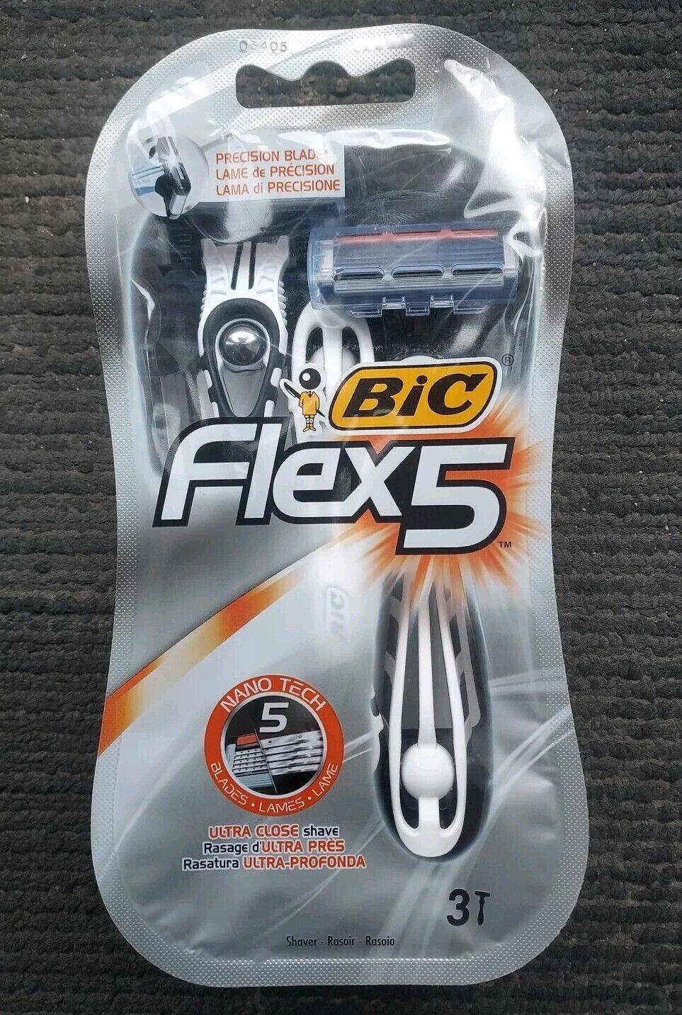 Bic Flex 5 Men - 5 Nano Techno Blade Razors - Pack of 3 Shave Shaver