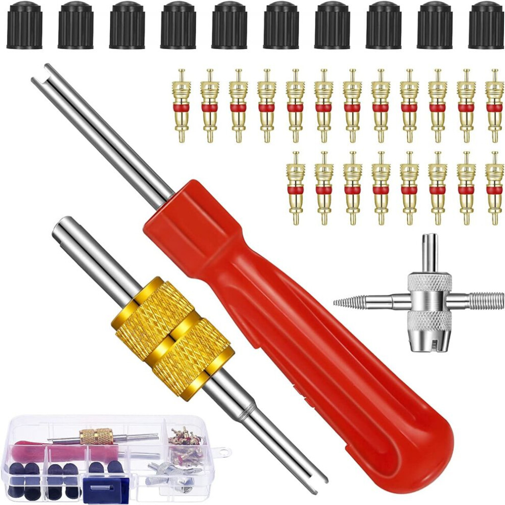 Tire Valve Removal Tool, Valve Core Remover Set with Metal 2-Way Wrench, Multi-Functional Valve Tool for Automotive, Motorcycle, Bicycle, and AC Appli