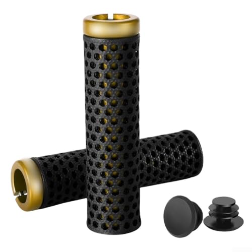 Honseadek Shock-Absorbing 3D Printed For Bicycle Grips with Lock-On Design and Breathable ETPU Material for Mountain Bikes and E-Bikes(black-gold sku)