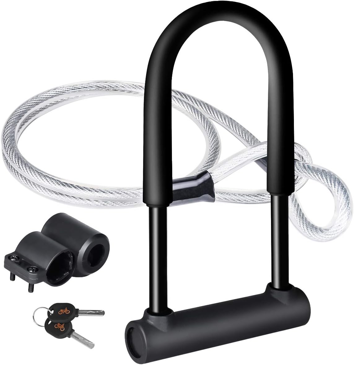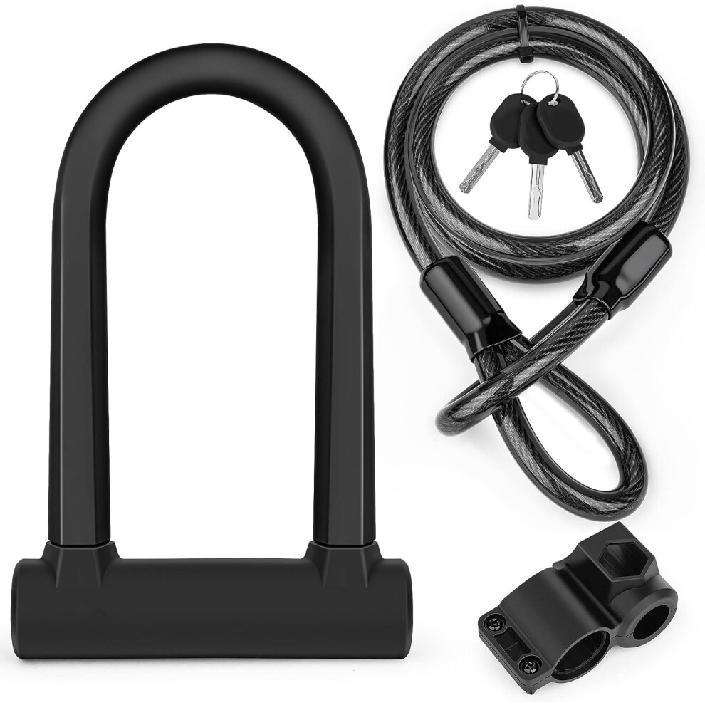 VIAVITO Heavy Duty Anti-Theft High Security Bike Lock Set, U Shaped D Lock & Steel Cable Coil Lock for Bicycle, Scooter, Skateboard, Gate, Fence, Door, w/Mounting Bracket & 4 Keys, Universal Fit
