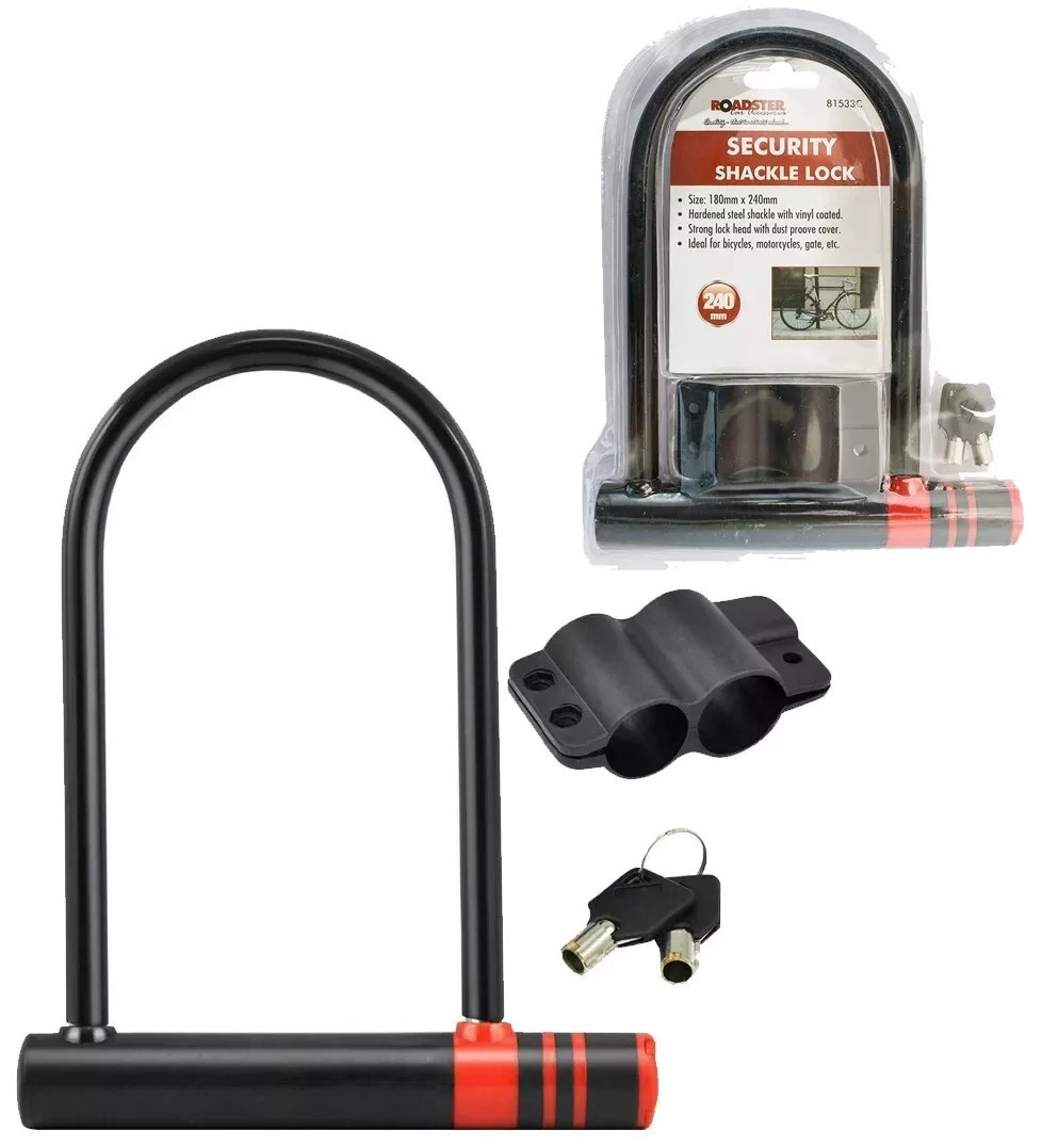 U TYPE BICYCLE LOCK STRONG HEAVY DUTY D LOCK BIKE MOTORBIKE 180 x 310MM