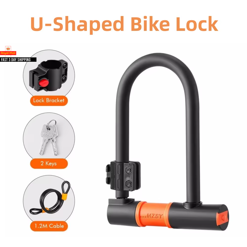 D/U Shaped Bike Lock Heavy Duty Cycle Motorbike Scooter Bicycle Security 2-Keys