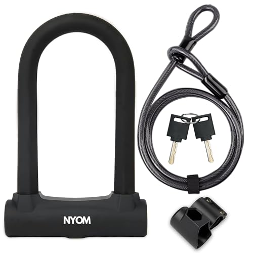 NYOM Heavy Duty D Lock with Cable – Anti-Theft Bicycle Lock for Road, Electric & Folding Bikes, D Locks for Bicycles, U Lock Security for Scooters & Motorbikes