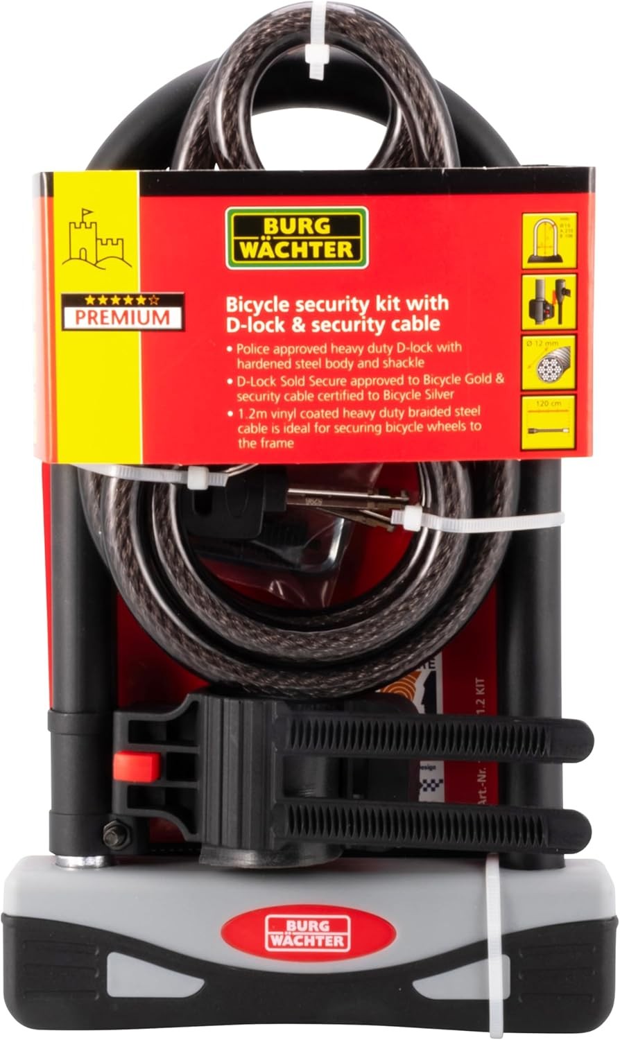 Burg-Wächter Gold Sold Secure Bicycle D Lock & 1.2M Security Cable,One Size, Black