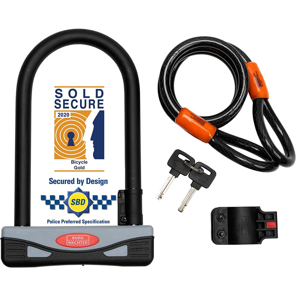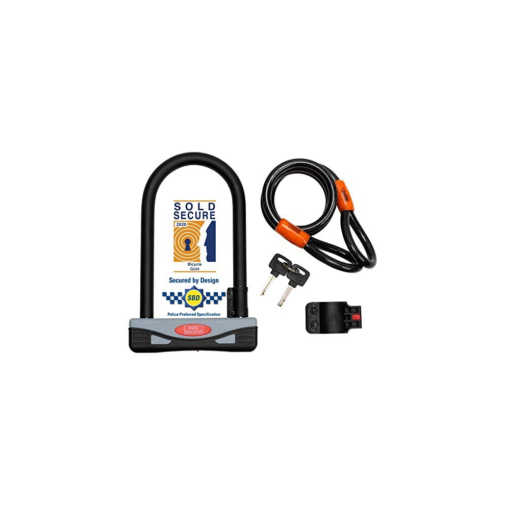 Burg-Wachter 2M Sold Secure Lock Kit Bike, Black, 2M & Burg Wächter 2.1 1600 HB KIT Gold Sold Secure Bicycle D Lock, Black, Large-2.1M Cable