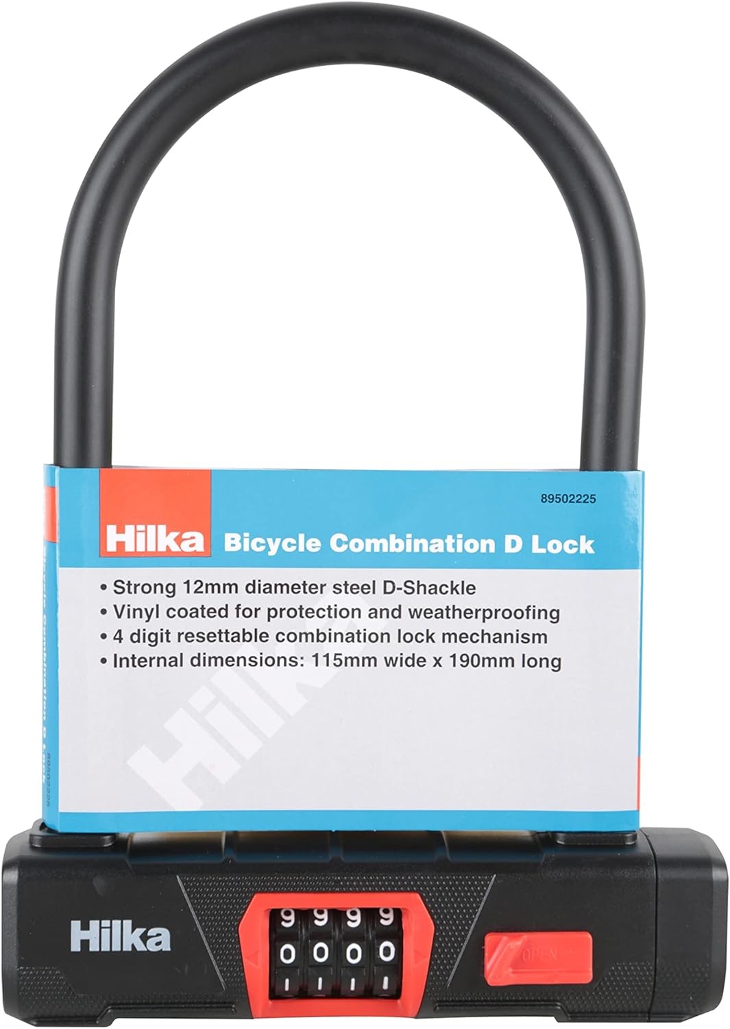 Hilka 89502225 Bicycle Combination D Lock, Black