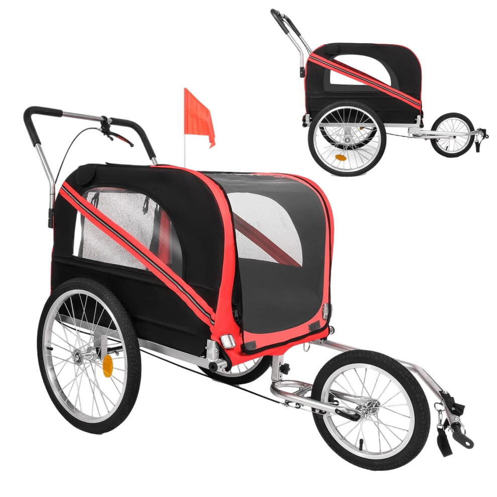 Dog Bike Trailer 2-in-1 Pet Stroller for Large Dogs Cart Foldable Bicycle Carrier Aluminium Frame with Safety Leash Hitch Coupler Reflector Flag