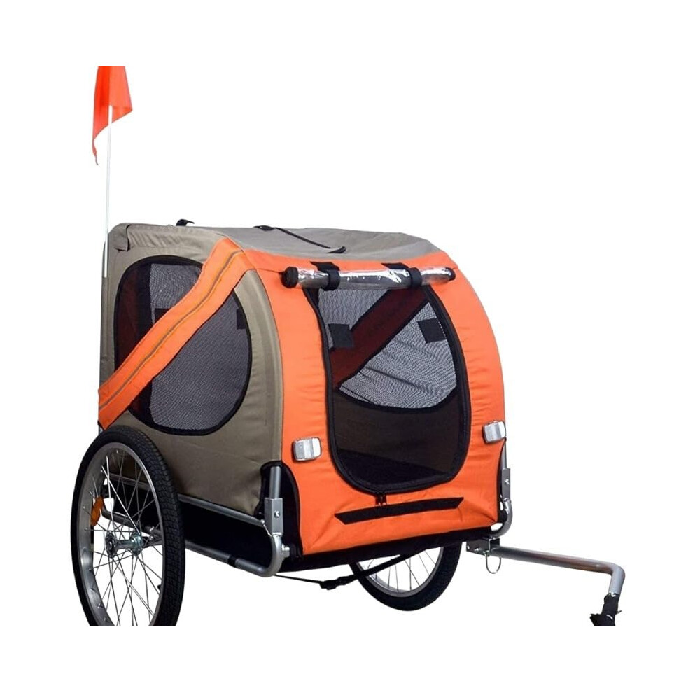 Dog Bike Trailer 2-in-1 Pet Stroller Cart Bicycle Carrier Attachment for Travel in steel frame with Wheels Hitch Coupler Reflectors Flag
